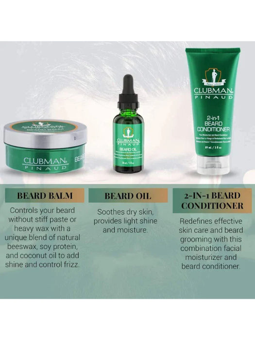Introducing the Clubman Beard 3 Piece Kit #27953, the ultimate collection of best-selling beard care essentials designed to meet the needs of every beardsman. This comprehensive kit includes a beard conditioner, balm, and oil, each playing a crucial role in achieving a soft, manageable, and well-maintained beard. Perfect for those who take pride in their facial hair, this kit ensures your beard looks and feels its best at all times.