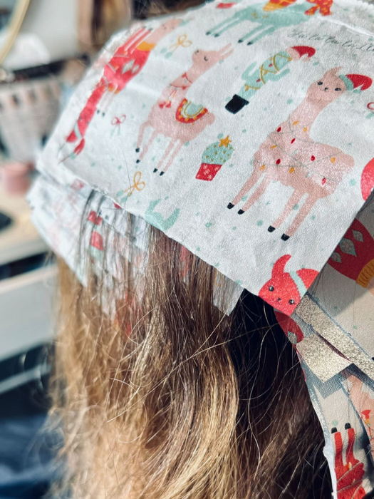 The Fa-La-La-Llama foil boasts the exclusive StyleTek "lock in place" technology with a distinctive dot pattern, ensuring that heat transfer is optimized for unparalleled hair coloring outcomes. Say goodbye to uneven color distribution; this foil locks in heat, providing a canvas for vibrant and long-lasting results that truly roar with brilliance.