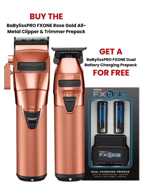 BaBylissPRO FXONE Rose Gold All-Metal Clipper & Trimmer Prepack Elevate your grooming routine with the BabylissPro All-Metal Interchangeab...