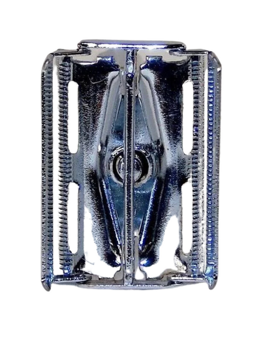 How to use: simply hold the shaver in one hand, turn the handle base counterclockwise to open the blade housing. CAREFULLY insert the double-edge blade, then close the head by turning the base in the opposite clockwise direction