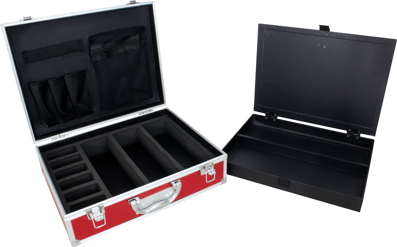 SMALL MASTERCASE 11 ½” X 4” X 10”, 3 LBS INCLUDES REMOVABLE COMPARTMENT HARD BACK BRIEFCASE STYLE CASE EASY CLEANUP TO PROTECT AND ENSURE PRISTINE TOOLS AVAILABLE IN BLACK, RED AND SILVER