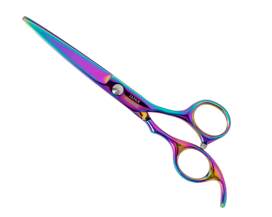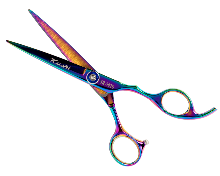 Introducing the Kashi Shear 6", a masterpiece in the world of professional grooming tools, specially coated with a captivating rainbow finish. Designed with the needs of students and professionals in mind, this Kashi Shear combines ergonomic comfort with unmatched control, thanks to its offset handle. The hand-adjustable tension screw, enhanced with a durable titanium coating, allows for personalized adjustment, ensuring smooth operation tailored to your cutting style.