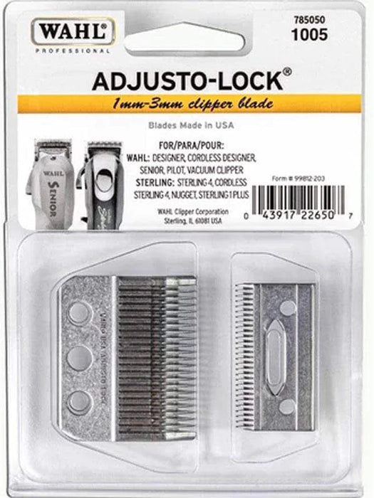 Elevate your cutting precision with the Wahl Professional Adjusto-Lock (1mm – 3mm) Clipper Blade #1005, a versatile tool from Wahl's commercial-grade line, designed exclusively for professional use. This clipper blade set stands out for its exceptional sharpness and adjustability, catering to the demanding standards of professional barbers and stylists.