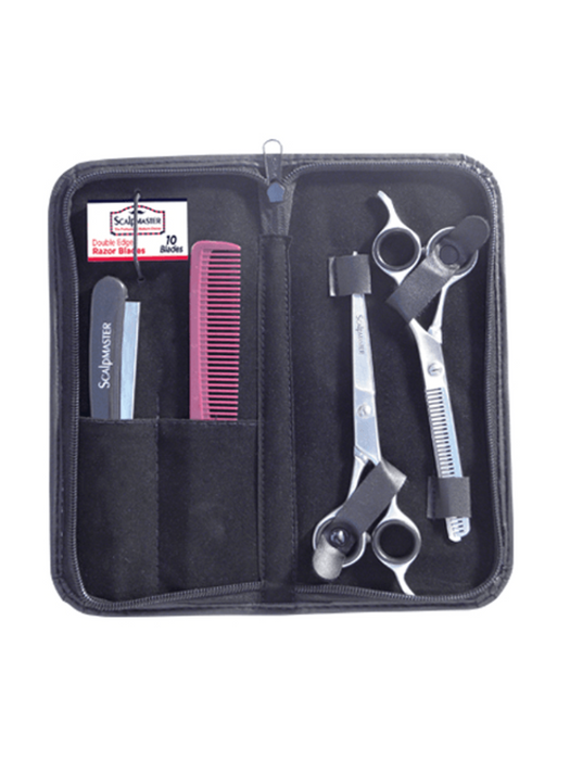 - A 7" stainless steel cutting shear with a finger-rest and 33 teeth