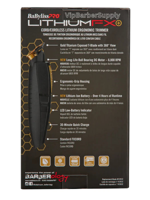 • Durability and Convenience: The BaBylissPRO Cordless Lithium FX+ is built to last, featuring a long-life ball bearing motor and a durable gold titanium wedge blade. The LED low-battery indicator keeps you informed, and the standard FXCORD allows for both corded and cordless use, adapting to your needs.