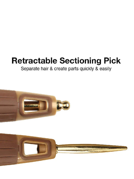 - Retractable Sectioning Pick: A retractable sectioning pick is ingeniously incorporated into the design for added convenience, aiding in precise styling and sectioning of the hair.