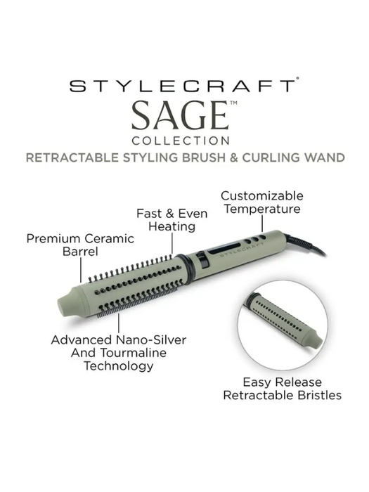 Stylecraft Sage Retractable Styling Brush & Curling Wand #SC716GR