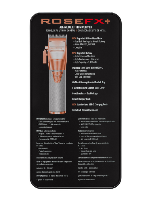 The BabylissPRO RoseFX+ All-Metal Lithium Nedic Clipper combines advanced technology and ergonomic design, ensuring every cut is precise and efficient.