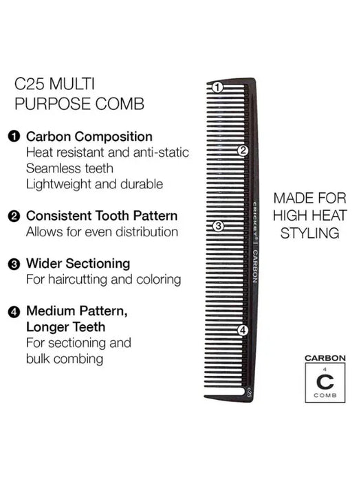 Cricket Carbon C25 Multi-Purpose Comb | Heat-Resistant & Durable