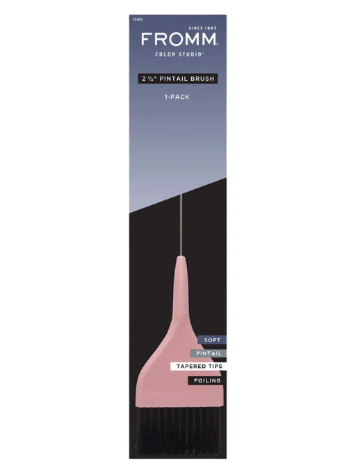 Discover the ultimate tool in hair coloring precision with the Fromm 2 1/4" Soft Pintail Color Brush. Designed for professionals who demand accuracy and flexibility in their work, this brush combines the efficiency of soft, densely packed bristles with the precision of a metal pintail. It's the perfect choice for detailed sectioning, foiling, and applying color techniques across all hair lengths.