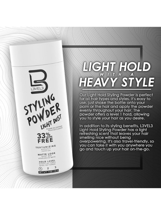 Experience effortless styling with L3VEL3 Light Hold Styling Powder and take your hair game to the next level.