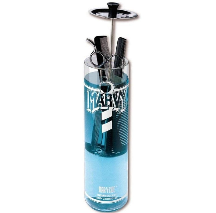 For disinfecting combs and small tools. Use with Marvy disinfectant concentrate. No. 3 Sanitizing Jar Our most economical jar. Features a slim shape to conserve space, yet holds several combs, shears, and razors. Made from unbreakable acrylic. Height 8-1/4″ Diameter 2-5/8″ Capacity 25 oz.