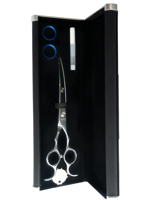 Enhance your barbering precision with the Percu 7-inch Professional Curved Hair Shears. Designed for professionals, these shears are crafted from premium Japanese steel, renowned for its exceptional sharpness and durability. Perfect for intricate cuts and styling, the curved blade design ensures smooth, accurate cuts every time.
