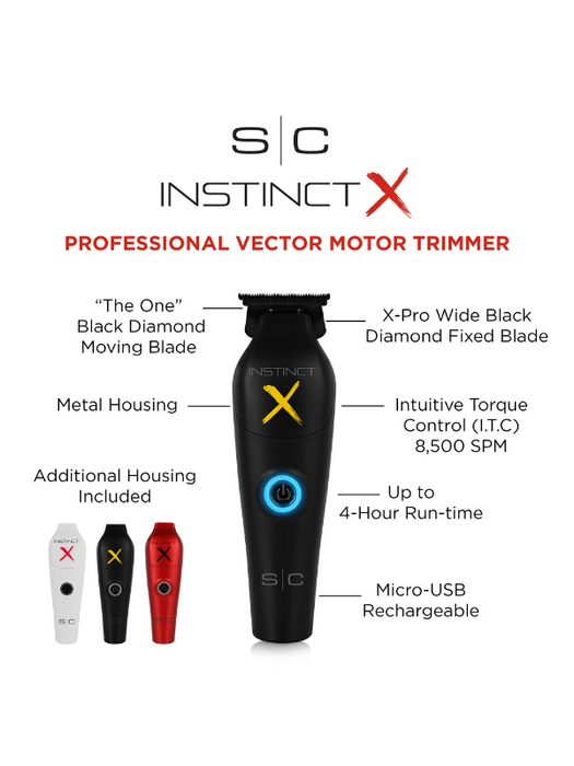 The Instinct X Metal Trimmer is engineered for precision and performance, offering an unmatched grooming experience. With its rear metal housing, this trimmer dampens noise and absorbs vibration, providing a quieter and smoother operation. The powerful IN2 Vector Motor with Intuitive Torque Control delivers an impressive 8,500 SPM, ensuring smooth, precise cuts every time.