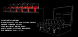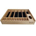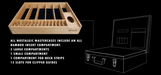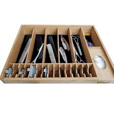 Removable bamboo compartment with 2 hook latches: 6 tall pockets, 12 short pockets, foam padded lid for security